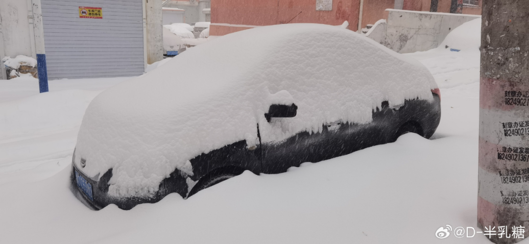 ↑据网友@D-半乳糖投稿,黑龙江鹤岗部分地区积雪已快淹没汽车。