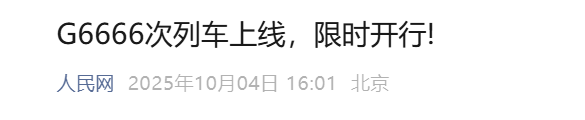 G6666次列车上线,限时开行!