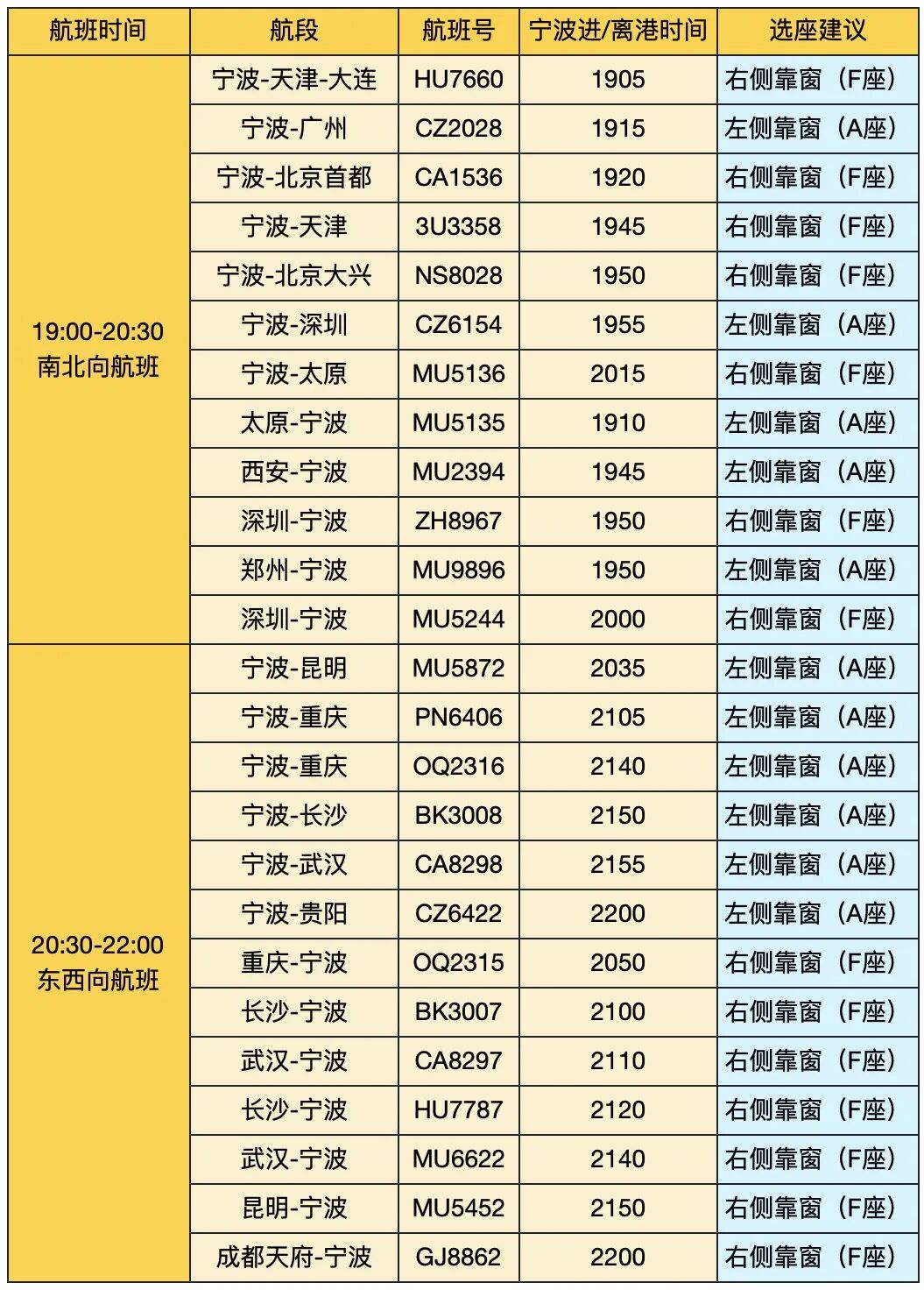 赏月航班小贴士