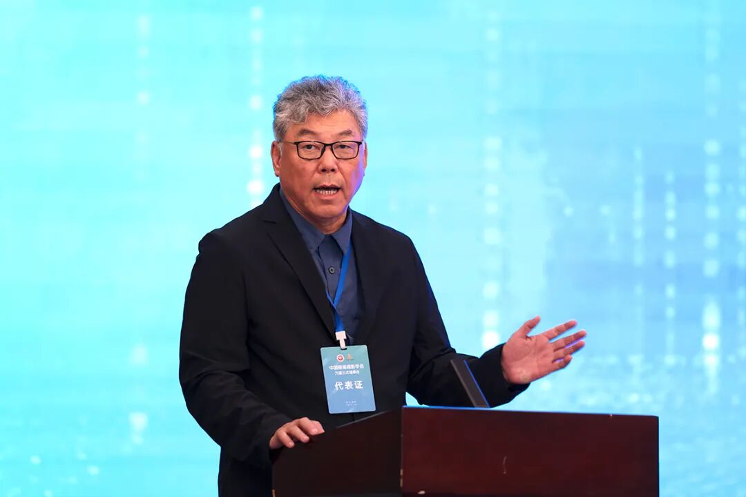 图为中国新闻摄影学会会长兰红光致辞。光明日报记者闫汇芳摄
