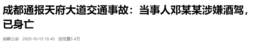 2025年10月13日凌晨3时18分许,我市天府大道南段发生一起道路交通事故。接警后,公安、消防、医疗救援等部门迅速到场处置。