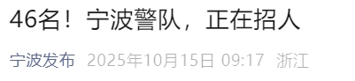 宁波市公安局交通管理支队辅警46名(扫描下方二维码查看详情)。