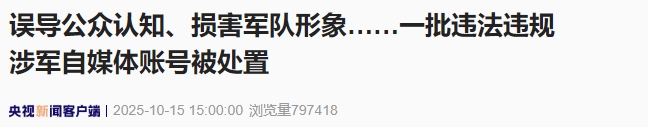 误导公众认知、损害军队形象……一批违法违规涉军自媒体账号被处置