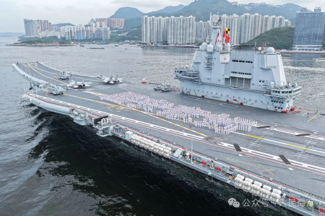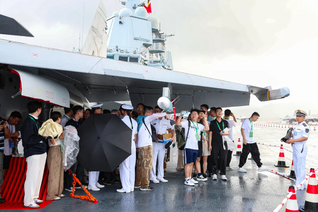 香港,参观者在山东舰上拍照留影。蔡年迟摄