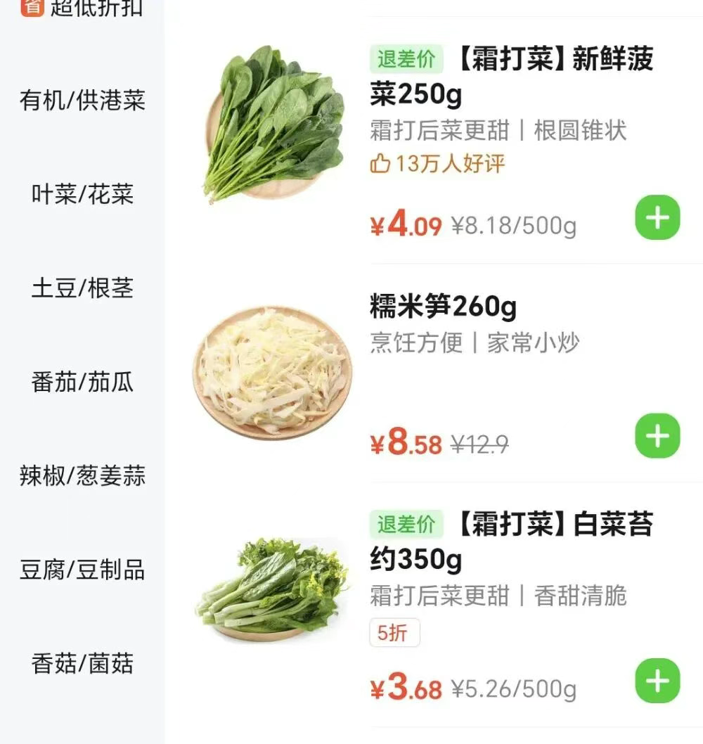 当然不行!冰箱的冷藏环境虽然也是低温,但一般温度在0℃-4℃左右,不会出现空气中的水汽在蔬菜表面凝结成霜的情况。而且冰箱内的低温环境相对稳定,不会像自然环境中气温波动和霜冻那样对蔬菜产生强烈的温度波动和冷刺激,因此无法引发类似“霜打菜”所经历的生理和生化反应。更重要的是,霜打菜的变化必须发生在植物仍在田间活动的状态下。