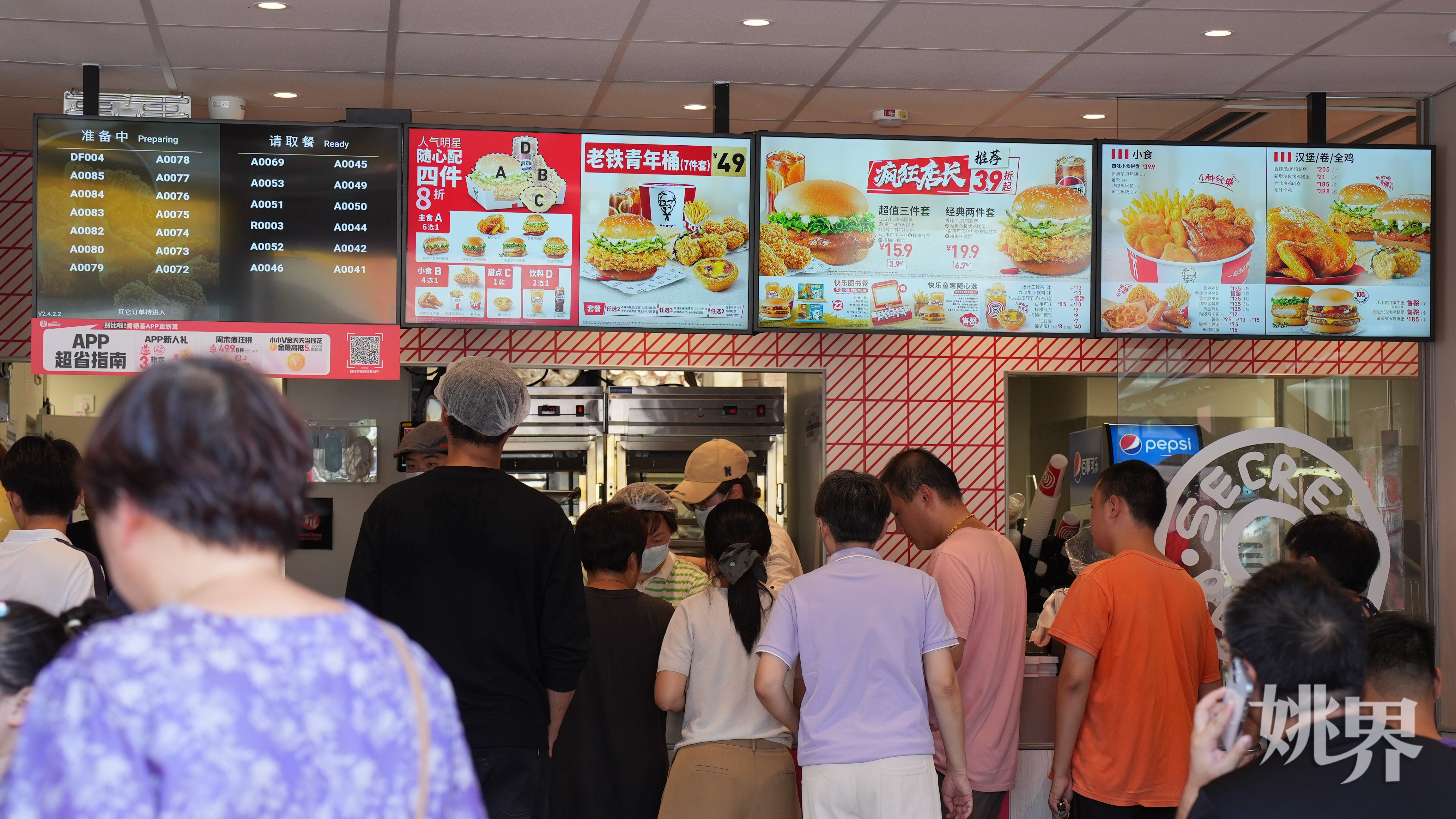 顾客在肯德基店内排队等候