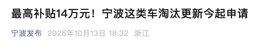 最高补贴14万元!宁波这类车淘汰更新今起申请